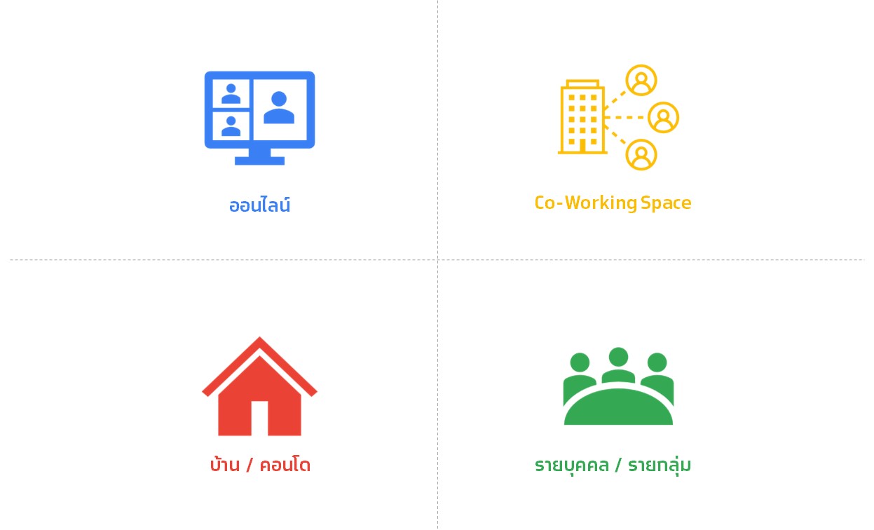 - สอนตามสถานที่ Co-Working Space (Central / The Street / มหาวิทยาลัย)